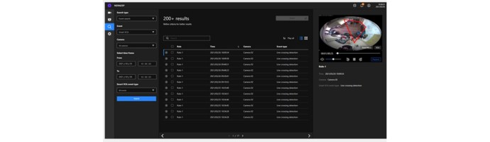 El nuevo NVR es compatible con la administración de alarmas y la búsqueda de eventos con las tecnologías Deep Learning de VIVOTEK y Smart VCA. El usuario puede buscar por uno o varios tipos de eventos, reproducir eventos de alarmas y también exportar los videos de la búsqueda.