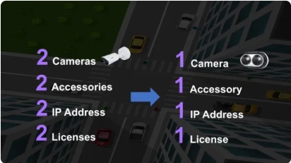 Gracias a su amplio campo de visión, la cámara de IA panorámica bidireccional ofrece una cobertura integral que elimina los puntos ciegos y reduce la necesidad de usar múltiples cámaras.
