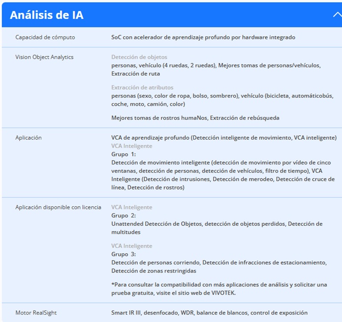 •Smart VCA y análisis de objetos de visión