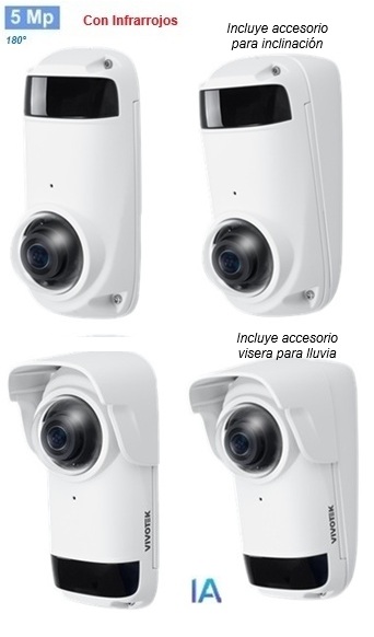 | | Cámara panprámica 180° y 5 Mp, para Int./Ext., IK10, IP66, IR 20m |