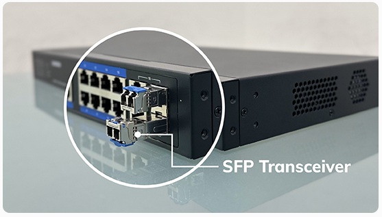 Con compatibilidad para entornos de fibra óptica a través de puertos de enlace ascendente SFP y transceptores SFP, estos switches ofrecen una integración perfecta con conexiones troncales a larga distancia y alta velocidad. Esta flexibilidad les permite a los arquitectos de redes escalar sistemas de forma sencilla manteniendo una conectividad sólida en áreas extensas.